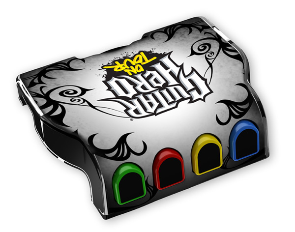 Of dat succes er gaat komen moet nog blijken. Er zijn namelijk - letterlijke - pijnpunten. De opzet van Guitar Hero On Tour is wat vreemd, er komt geen gitaar aan te pas. Bij de cartridge van het spel wordt een handgreep geleverd met vier knoppen, die overeenkomen met de knoppen op de hals van de gebruikelijke Guitar Hero-gitaar. Inderdaad, vier knoppen in plaats van de vijf die op de hals van de plastic gitaren zitten. De plastic handgreep past in het slot dat is bedoeld voor Gameboy-cartridges, de game zelf staat op de gebruikelijke DS-cartidge. De handgreep heeft een verstelbare band waarmee hij, en daarmee de hele DS, aan de linkerhand van de speler kan worden vastgesnoerd. In de handgreep zit een plectrum verborgen, dat de stylus vervangt bij het aanslaan van de 'snaren'. Op het linkerscherm van de gekantelde DS zijn de naar beneden sijpelende noten zichtbaar. De noten moeten - als ware het snaren - met het plectrum worden aangeslagen, op het aanraakgevoelige scherm van de handheld. Gelukkig is er de optie om het beeld om te draaien, waardoor het spel ook door linkshandigen kan worden gespeeld.