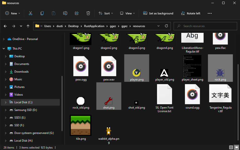 Bij het zoeken tussen de bronbestanden kunnen de plaatjes ook worden aangepast door het overschrijven van de afbeeldingen 'player.png', 'hot.png' en 'rock.png', die relevant zijn voor Astroblasto.