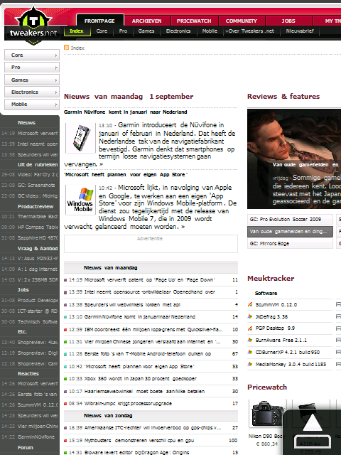 Internetten is een belangrijk gebruiksdoel van de Touch Pro. Het toestel is voorzien van een Opera-browser, Opera Mobile 9.5 om precies te zijn, die bijna elke site goed blijkt weer te geven. Tweakers.net bijvoorbeeld wordt prima op de vernieuwde Noorse browser getoond. Door twee keer op een item te klikken, zoomt Opera Mobile op het aangeklikte item in; tevens wordt de omgeving automatisch zo aangepast dat alles netjes op het scherm wordt weergegeven. Youtube-filmpjes kunnen met de nieuwste Flashlite-update prima via de browser worden bekeken. Het toestel is overigens ook voorzien van een native Youtube-applicatie, die in samenwerking met Google is gemaakt. Via deze applicatie is het mogelijk video's op te zoeken en te bekijken. Zodra de video wordt afgespeeld, springt het scherm in de landscape-modus, zodat de video goed kan worden bekeken. Deze applicatie werkt erg goed en doet wel wat aan de Youtube-applicatie van de iPhone denken.
