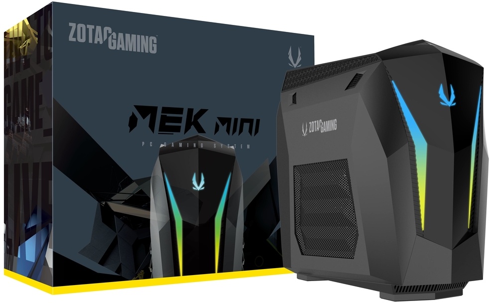 Zotac brengt zijn compacte game-pc met verwisselbare GeForce RTX 2070-videokaart uit. De MEK Mini heeft een behuizing van 26cm hoog met een inhoud van 9 liter. De kleine computer heeft een Core i7-8700-hexacore-cpu en 16GB ddr4-werkgeheugen.