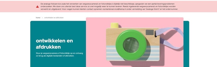 Nieuws - HEMA stopt tijdelijk met analoge fotoservice na verwisselen foto's klanten HEMA stopt tijdelijk met de analoge fotoservice voor het ontwikkelen van fotorolletjes. Onlangs bleek dat de dienst foto's van klanten verkeerd leverde. Bestaande bestellingen worden nog afgehandeld. |